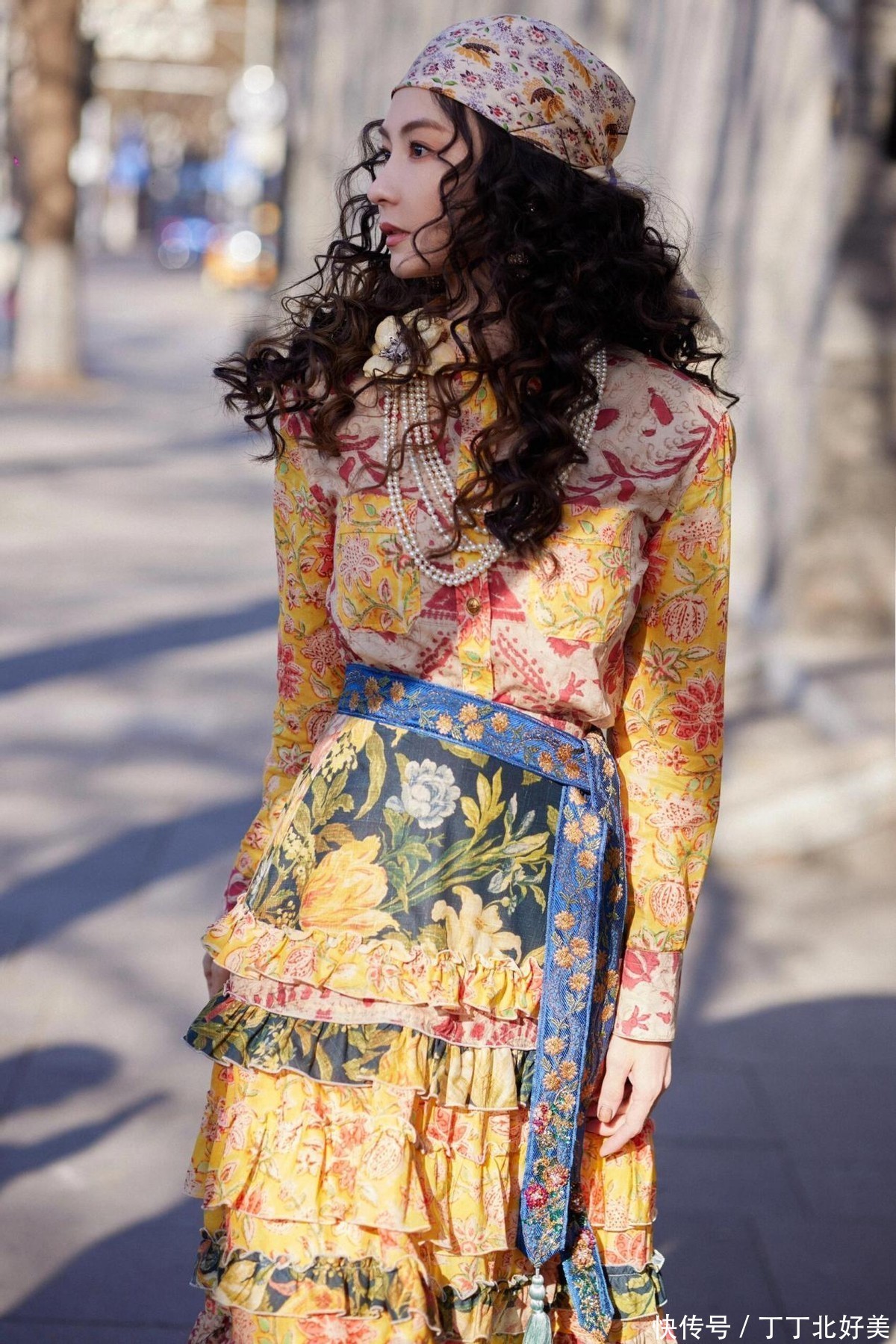 印花连衣裙闲雅又相沿,别有一番异地风情。