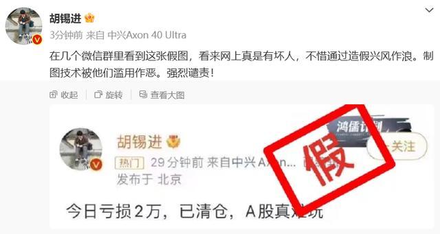 【胡锡进辟谣 微信群传言其巨亏清仓图是谣喙】财联社7月12日电,胡锡进发微博暗意,网上真有坏东说念主,不吝通过作秀呼风唤雨。